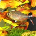 非常珍貴的小型燈魚,此魚的特徵就是尾柄處有一鮮明的血紅色條紋,雄魚的尾鰭尖端有鉤狀形狀,故雌雄分辨很容易,對水質要求較高,喜歡酸性軟水。