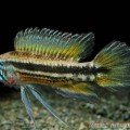 原产地南美洲亚马逊河,属慈鲷科。体长10-15CM,体呈圆盘形侧扁。头尖,腹鳍是两条长长的丝鳍,体侧3-5条黑色垂直横带,似斑马条纹而得名。饲养水温22-26摄氏度,水质微弱酸性软水,饵料以虫鱼为主。繁殖水温26-28摄氏度,亲鱼性成熟6个月,雄鱼个体较大,头顶呈圆弧形微微隆起,各鳍较长。雌鱼头顶平滑,磁板卵生,每次产卵300-500粒。