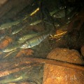 盛暑之下,魚群也躲在石下陰涼處避暑,大家可以數一下這不到一平方米的石底裡有多少的香港鬥魚。