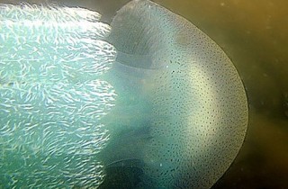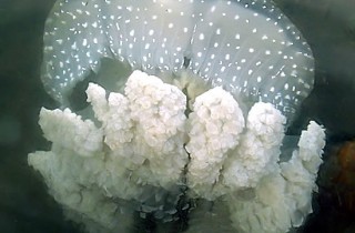 單看泳鐘形態,牠和珍珠水母(Phyllorhiza punctata)的泳鐘很相似,
